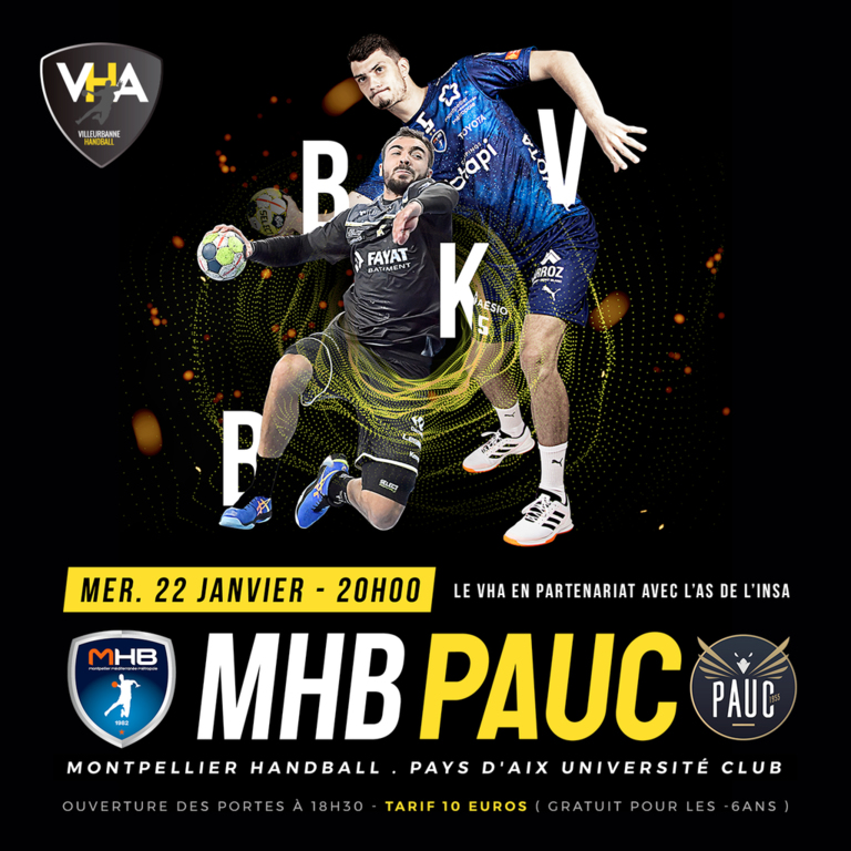 Le Villeurbanne Handball Association organise un match de gala entre le Montpellier Handball (MHB) et le Pays d'Aix Université Club Handball (PAUC), en partenariat avec l'association de l'INSA Lyon.