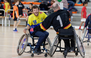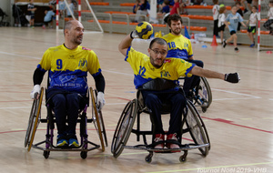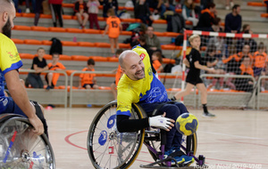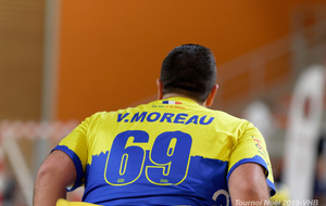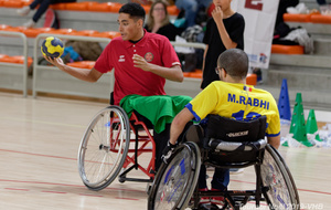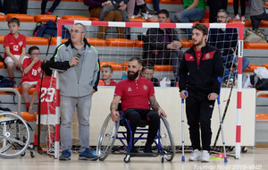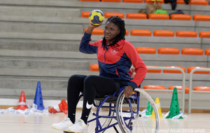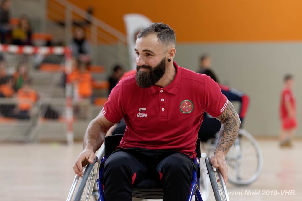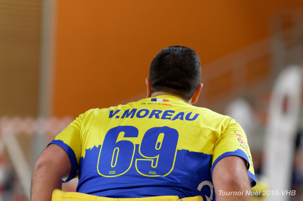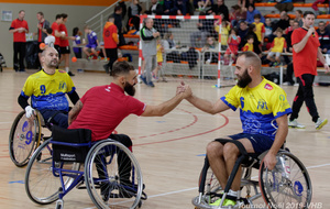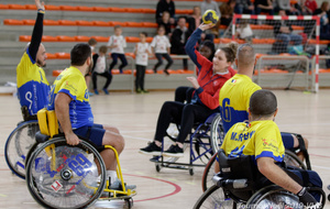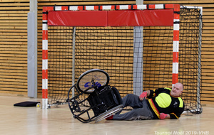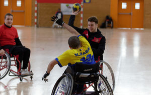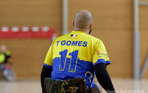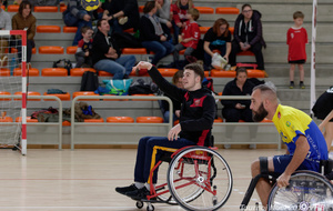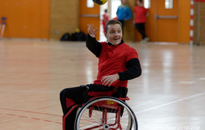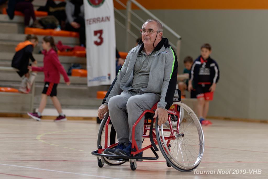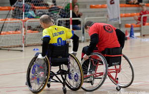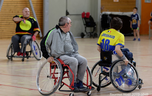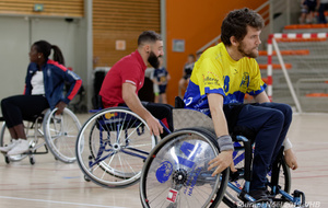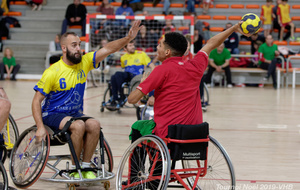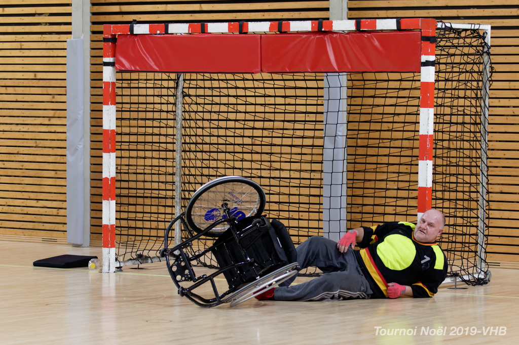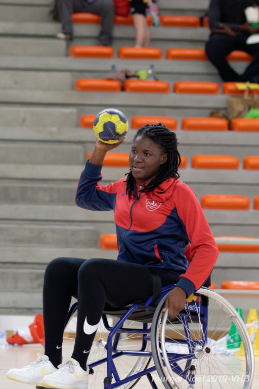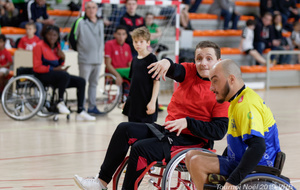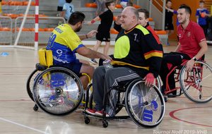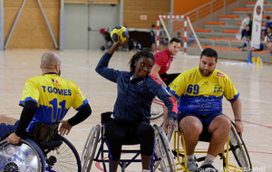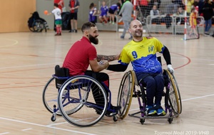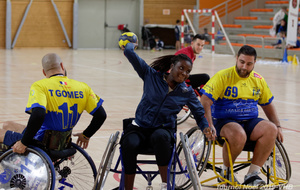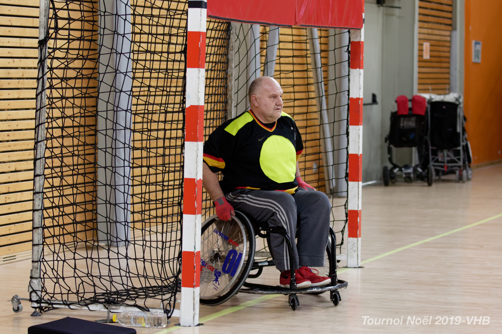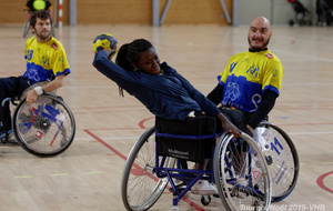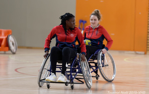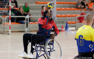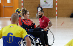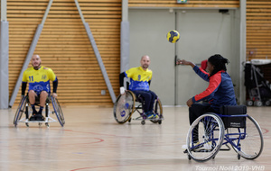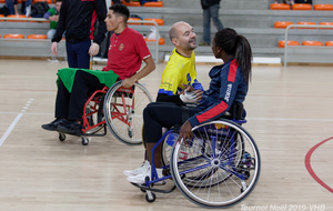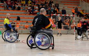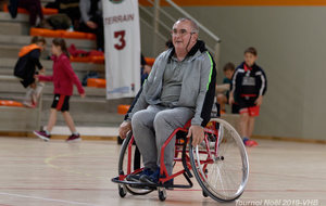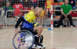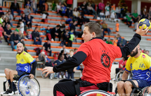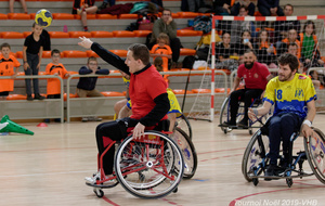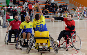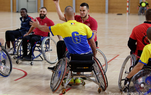 Démonstration de HandFauteuil lors du Tournoi de Noël 2019 qui a eu lieu à Arnas. Les joueuses de D2 du club de l'ASUL Vaulx-en-Velin ainsi que les joueurs de N2 du club de Villefranche-sur-Saône se sont confrontés à la section HandFauteuil du club de Caluire.