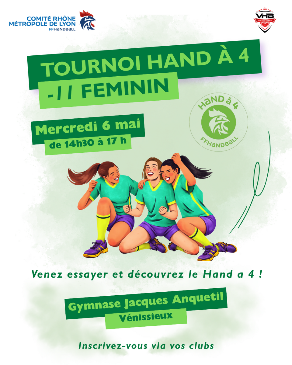 Dans le cadre du développement de la pratique du Hand à 4 et avec la volonté de renforcer la féminisation du handball chez les moins de 11 ans, le Comité organise un tournoi de Hand à 4 dédié à la catégorie M11 Féminin.